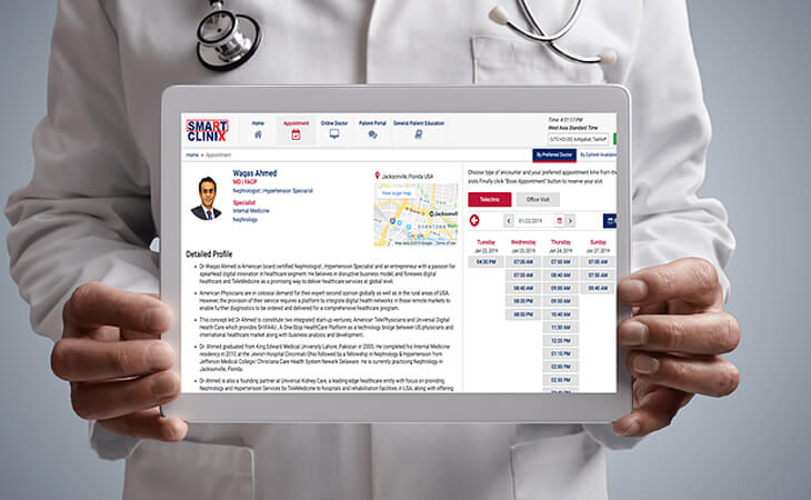 SmartClinix provides an easy and streamlined experience using state-of-the-art in-house developed practice management portal with instant as well as scheduled tele-consultation